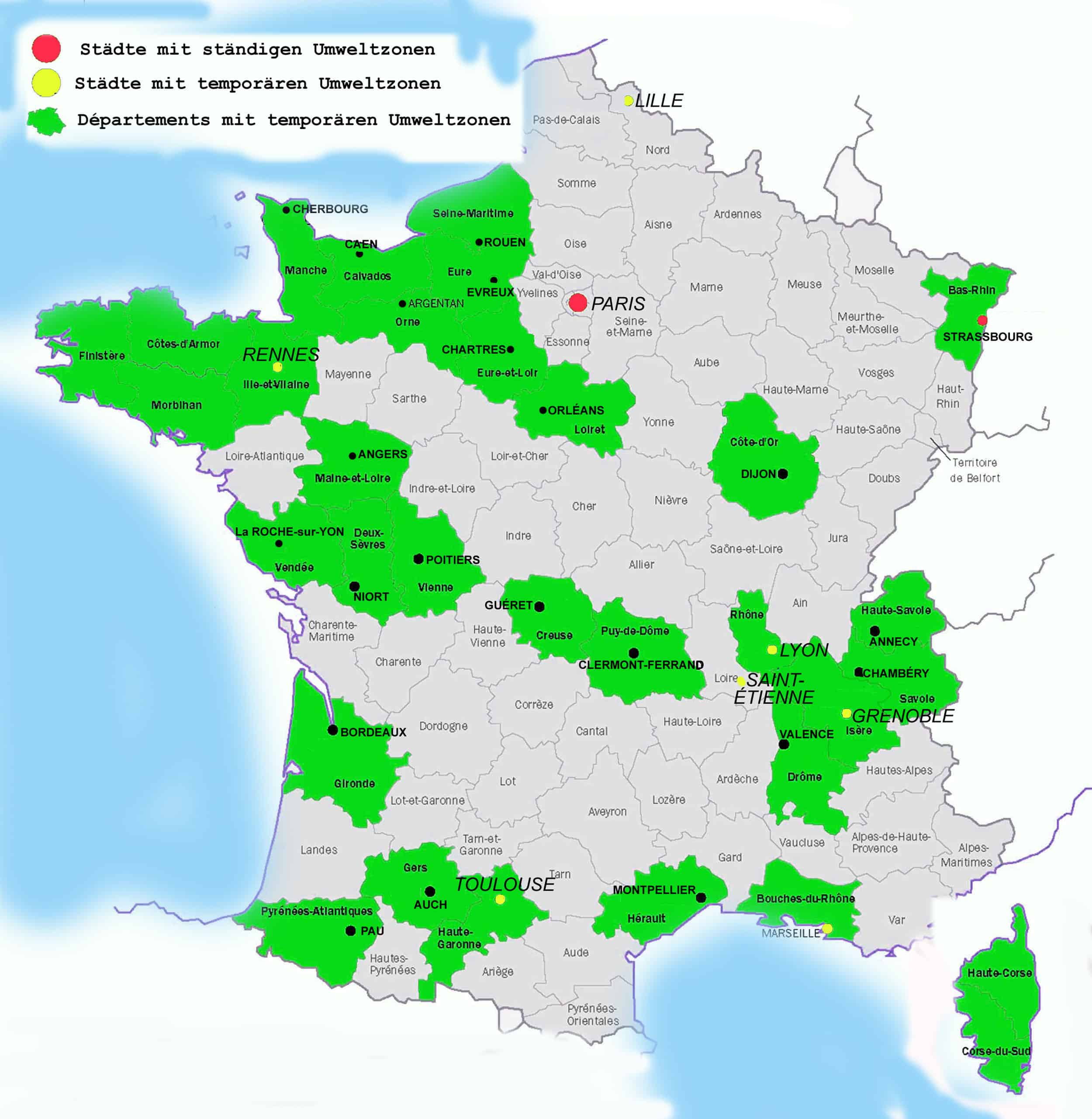 Umweltzonen in den Départements