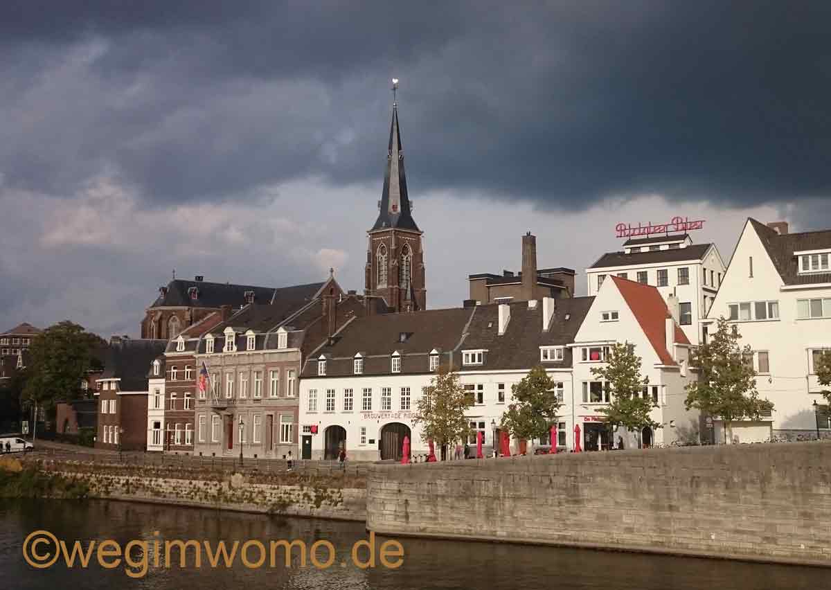 Wer von hier aus nur etwa 700 m Richtung Norden fährt, befindet sich bereits in Belgien. Alle, die einen Supermarkt benötigen, können folglich zwischen einem in Belgien oder einem in den Niederlande wählen. Da wir aus Belgien eingereist sind, war die Option eines belgischen Supermarktes für uns natürlich nicht interessant. Wir wollten uns aber nur Maastricht ansehen.