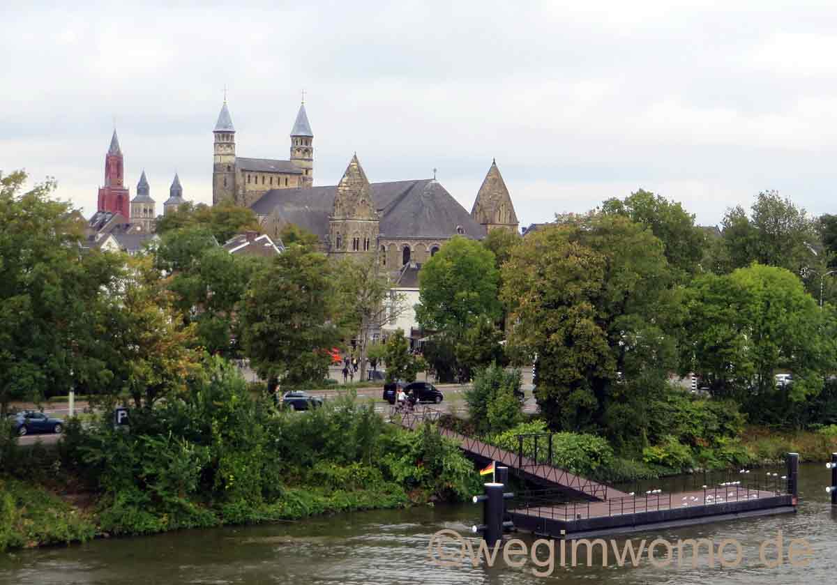 das Fahrrad ist hier sicherlich die bessere Wahl. Die Entfernung lässt sich ein wenig abkürzen, wenn man den Stellplatz beim Toilettenhaus durch ein kleines Gatter verlässt und den Weg über den Teich der Maas nutzt. Es ist zudem auch wesentlich schöner, hier mit dem Rad zufahren oder zu laufen im Vergleich zur recht stark frequentierten Zufahrtstrasse nach Maastricht.