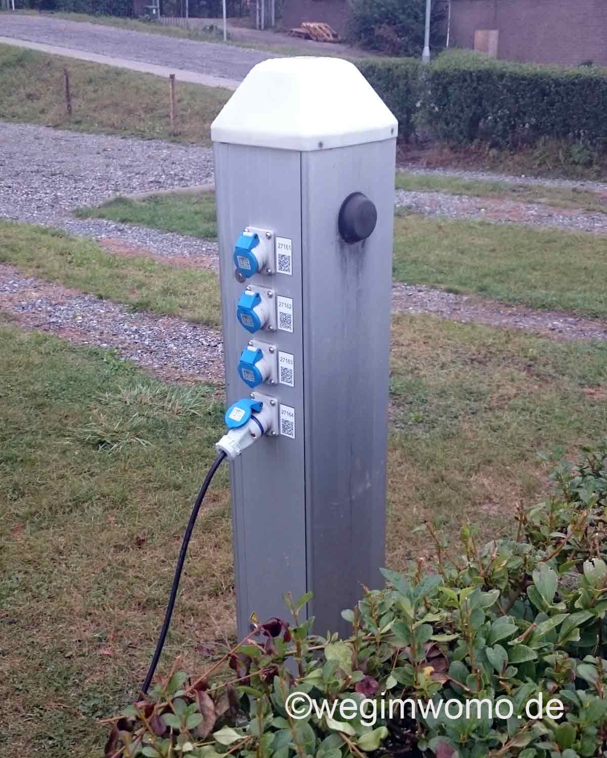 Stromverteiler sind über den gesamten Platz verteilt. Es kann also auch passieren, dass eine Kabeltrommel* nötig ist, weil im nahen Umfeld zufällig alle Anschlüsse belegt sind. Strom muss ebenfalls extra gezahlt werden. Die Bezahlung erfolgt über den Automaten bei der Einfahrt. Einfach einen freien Anschluss auswählen und die dazugehörige Nummer merken. Die Nummer am Automaten eingeben und mit 50 Cent /KWh freischalten.